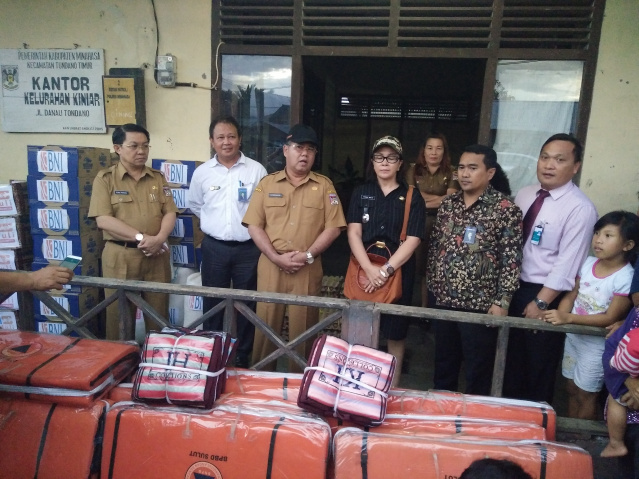 Minahasa – Pemerintah Kabupaten (Pemkab) Minahasa bersama tiga Bank yang berkantor cabang di Kota Tondano yaitu Bank BNI, Bank BRI serta Bank Sulut-Go, menyalurkan bantuan kepada korban terdampak bencana di tiga wilayah yakni Kiniar, Kakas dan Leilem, Selasa (20/2/2017)