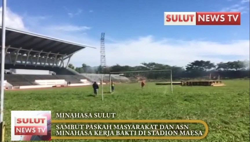 Sambut Paskah Nasional 2017 Ribuan Warga dan ASN Kerja Bakti di Stadion Maesa