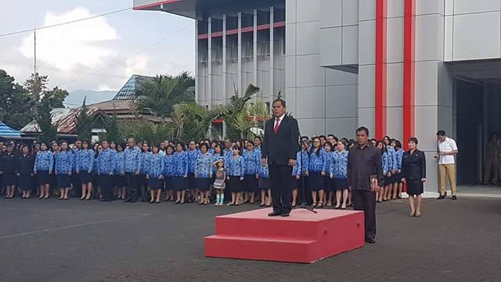 Tondano – Bupati Minahasa Jantje Wowiling Sajow (JWS) Menjadi Inspektur upacara dalam rangka Hari Pendidikan Nasional (Hardiknas) yang diperingati di seluruh Indonesia selasa 2/5/17 di lapangan Kantor Bupati Tondano