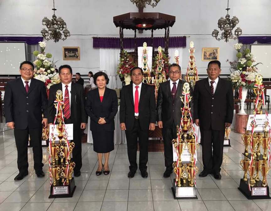 Adapun prosesi penyerahan Trophy dan Hadiah bagi para Juara Lomba ini dilaksanakan sesudah Ibadah Awal Bulan Mei Pemkab Minahasa yang dipimpin oleh Ketua FKUB Minahasa Pdt Evert Tangel STh MPdK, yang diawali dengan Laporan Plt Kadis Kebudayaan dan Pariwisata Agustivo Tumundo SE MSi dan dihadiri oleh Bupati Minahasa Drs Jantje Wowiling Sajow MSi, Ketua TP PKK Dr Olga Sajow-Singkoh MHum, jajaran Forkopimda, Sekdakab Jeffry Korengkeng SH MSi, para pejabat Pemkab, para Pendeta dan Hamba Tuhan dari berbagai Denominasi Gereja dan semua ASN Pemkab Minahasa.