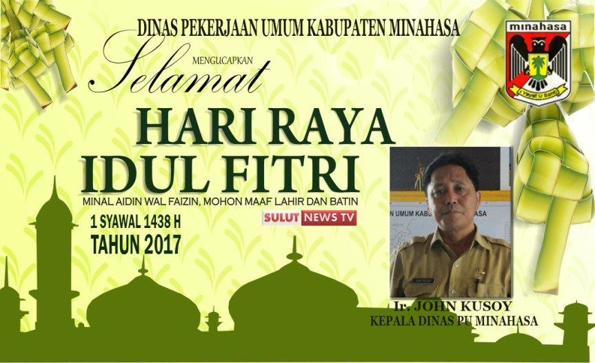 Kepala Dinas Pekerjaan Umum Kabupaten Minahasa Ir. John Kusoy bersama Jajaran, mengucapkan Selamat hari raya idul fitri 1 Syawal 1438 H, raih kemenangan dan kembali ke fitrah. Minal aidin wal faidzin, Mohon maaf lahir dan batin.