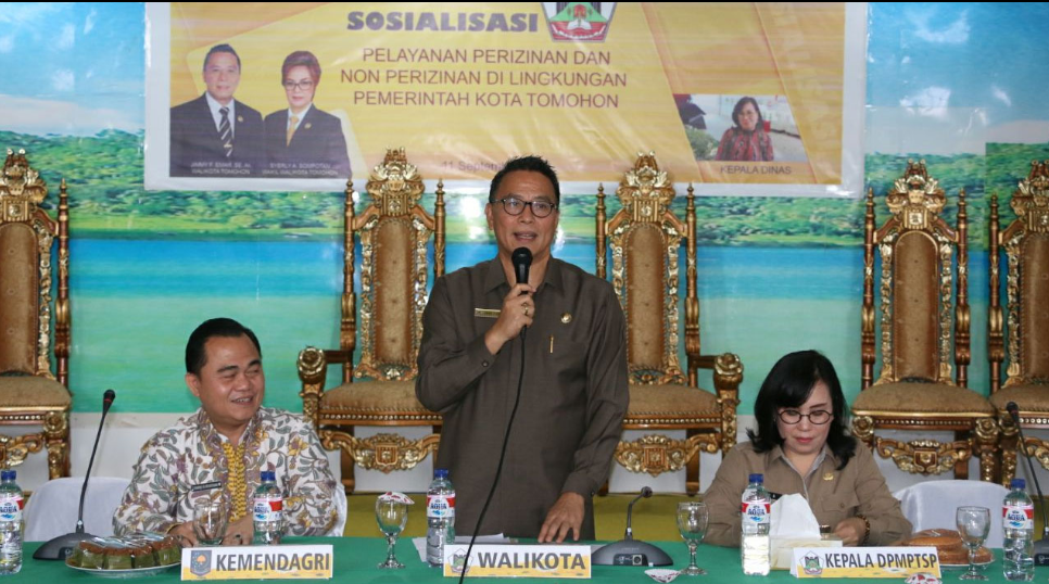 Tomohon – Dalam meningkatkan layanan publik yang cepat dan tepat kepada masyarakat, Pemkot Tomohon menggelar Sosialisasi Pelayanan Perizinan dan Non Perizinan yang diadakan di Aula Rumah Dinas Walikota Tomohon Senin(11/9/17).