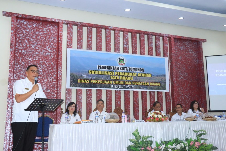 Tomohon – Pemerintah Kota Tomohon melalui Dinas Pekerjaan Umum & Penataan Ruang Kota Tomohon menggelar kegiatan Sosialisasi Perangkat Aturan Penataan Ruang yang dilaksanakan di Wisma AAB Guest Tomohon, Rabu 13/9.