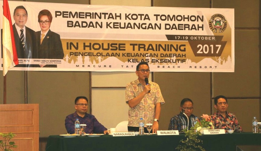 Walikota Tomohon Jimmy F Eman SE Ak dalam sambutannya sekaligus membuka kegiatan secara resmi mengatakan bahwa pelaksanaan pelatihan pengelolaan keuangan daerah bagi aparat pemerintahan daerah (in house training) kelas executive ini menjadi salah satu upaya Pemerintah Kota Tomohon dalam pencapaian akan prioritas pembangunan Nasional, Provinsi Sulawesi Utara dan Kota Tomohon. Selain itu pelaksanaan kegiatan ini juga menjawab permasalahan bagi aparatur pemerintah yaitu kurangnya pemahaman akan peraturan yang ada khususnya dalam pengelolaan keuangan daerah.