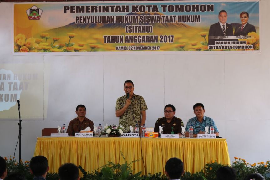 Tomohon – Pemerintah Kota Tomohon melalui Bagian Hukum Setda Kota Tomohon menyelenggarakan penyuluhan hukum terpadu siswa taat hukum (sitahu) bertempat di Aula SMP Negeri I Tomohon, Kamis (2/11)