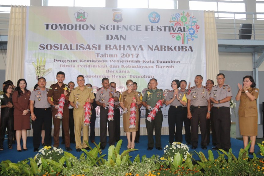 Tomohon – Wujud Program Kemitraan Pemerintah Kota Tomohon melalui Dinas Pendidikan dan Kebudayaan Daerah bersama dengan Kepolisian Resort Tomohon dalam melaksanakan kegiatan Tomohon Science Festival berlangsung meriah. Walikota Tomohon Jimmy F. Eman, SE.Ak didampingi Wakil Walikota Syerly A.Sompotan menghadiri kegiatan ini yang dilaksanakan di Aula SMU lokon dan juga di hadiri oleh Wakapolda Sulut Brigjen Pol. Drs. Johanis Asadoma,M.Hum beserta rombongan, Selasa (7/11/2017).