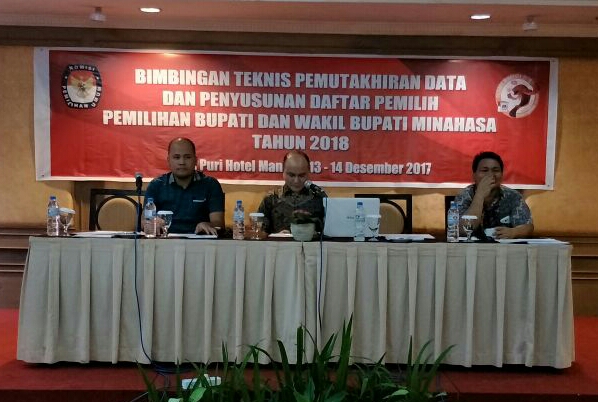 ” Kegagalan menghasilkan data pemilih yang akurat akan berpengaruh ke setiap tahapan dan divisi lain, diantaranya divisi Anggaran dan logistik yang menyiapkan kertas suara, karena data tidak valit maka kertas suaranya pun salah cetak jumlahnya, ” terang Ketua KPU Kabupaten Minahasa Meidy Yafet Tinangon SSi, MSi saat membuka kegiatan Bimbingan Teknis Pemutakhiran Data dan Penyusunan Daftar Pemilih Pemilihan Bupati dan Wakil Bupati Minahasa Tahun 2018, bertempat Gran Puri Hotel Manado, 13-14 Desember 2017.