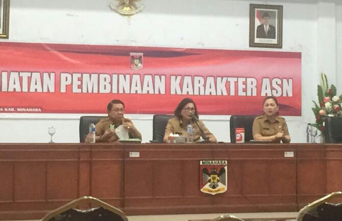 Minahasa – Pemkab Minahasa menggelar Kegiatan Pembinaan Karakter Aparatur Sipil Negara (ASN) pada Senin, (18/12/2017), di ruang sidang kantor Bupati Minahasa.