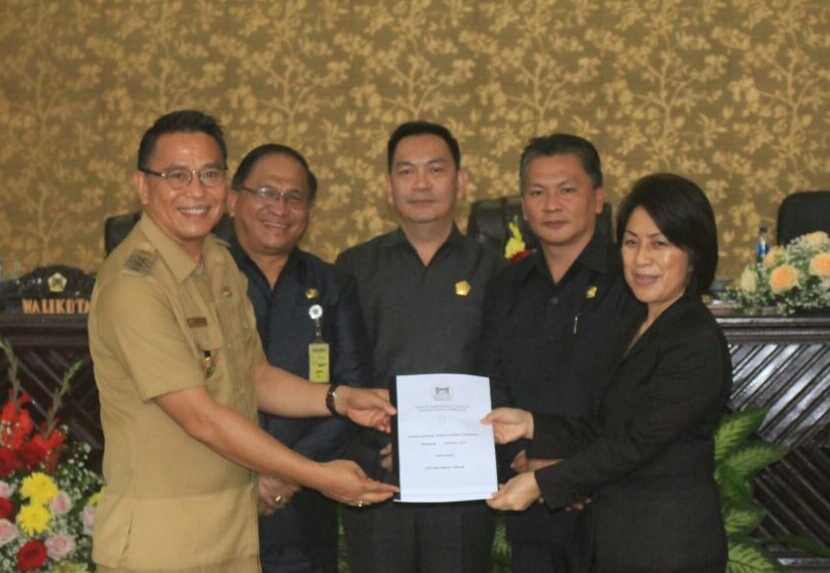 Disela rapat dilakukan penandatanganan berita acara dilanjutkan dengan penyerahan naskah keputusan, berita acara dan ranperda yang telah dibahas dari ketua DPRD kepada Walikota Tomohon.