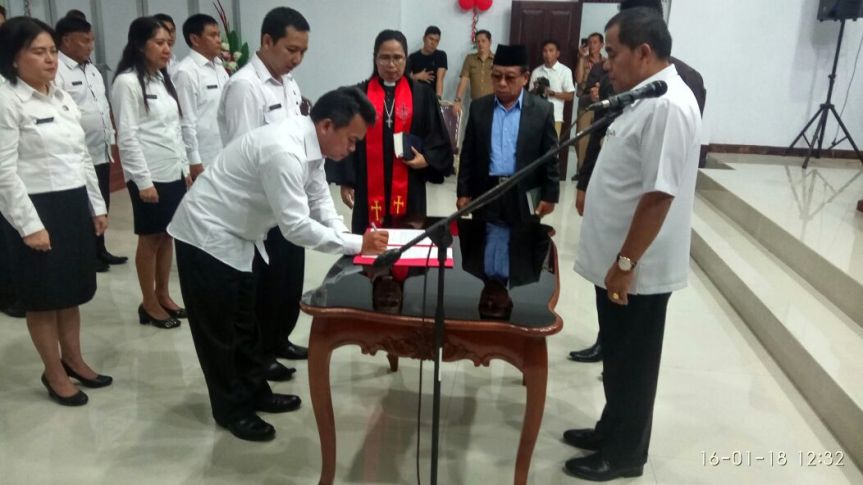 Minahasa – Atas izin dari Menteri Dalam Negeri Repoblik Indonesia (Mendari-RI), dengan nomor 821/10322/OTDA, serta izin dari Gunernur Sulawesi Utara, perihal pengisian Jabatan Fungsional Pengawas Penyelenggaraan Urusan Pemerintah di Daerah (P2UPD) dan Pejabat Struktural Eselon III dan IV, di lingkungan Pemerintah Kabupaten (Pemkab) Minahasa, khususnya di Inspektorat Kabupaten Minahasa, Bupati Minahasa Drs Jantje Wowiling Sajow MSi melantik para pejabat tersebut berdasarkan Surat Keputusan Bupati nomor 592 dan 593 tahun 2017.