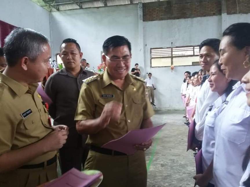 “Selamat kepada guru honorer yang telah menerima SK. Semoga dengan diterimanya SK ini,para guru honorer dapat lebih meningkatkan kinerja dan pengabdian untuk para anak didik,” ujar Bupati.