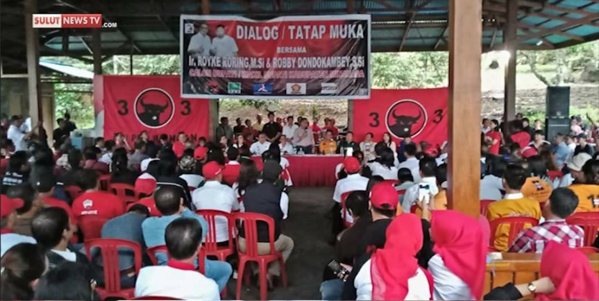 Minahasa – Ribuan massa hadiri dialog dan tatap muka calon bupati/wakil bupati minahasa Roy O Roring dan Robby Dondokambey di Desa Toraget Langowan Utara Rabu 25/4/18.