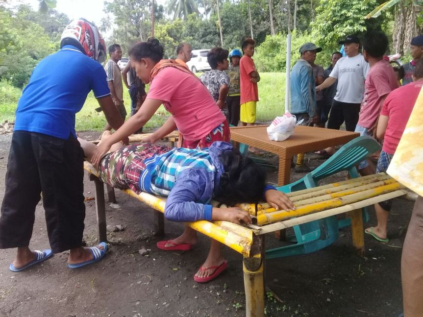Salah satu korban Deisye Sirita (40) warga Desa Sapa mengalami kecelakaan lalulintas, korban mengalami luka bagian tangan kaki serta benturan di bagian kepala, korban langsung dilarikan di puskesmas Desa Tenga untuk mendapatkan perawatan medis.