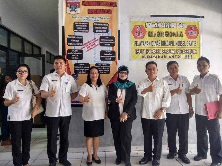 Amurang – Usai kunjungan Kepala Dinas Kependudukan Catatan Sipil dan KB Provinsi Sulawesi Utara (Sulut), dr Bahagia Mokoagow di Dinas Kependudukan dan Pencacatan Sipil di Kabupaten Minahasa Selatan pada Rabu (23/5/2018), Kadis Dukcapil Minsel Corneles Mononimbar mengatakan bahwa jam kerja dan waktu kerja kami di sini di tuntut untuk lebih meluangkan waktu dalam melayani masyarakat termasuk jam makan siang aja makan di ruang kerja.