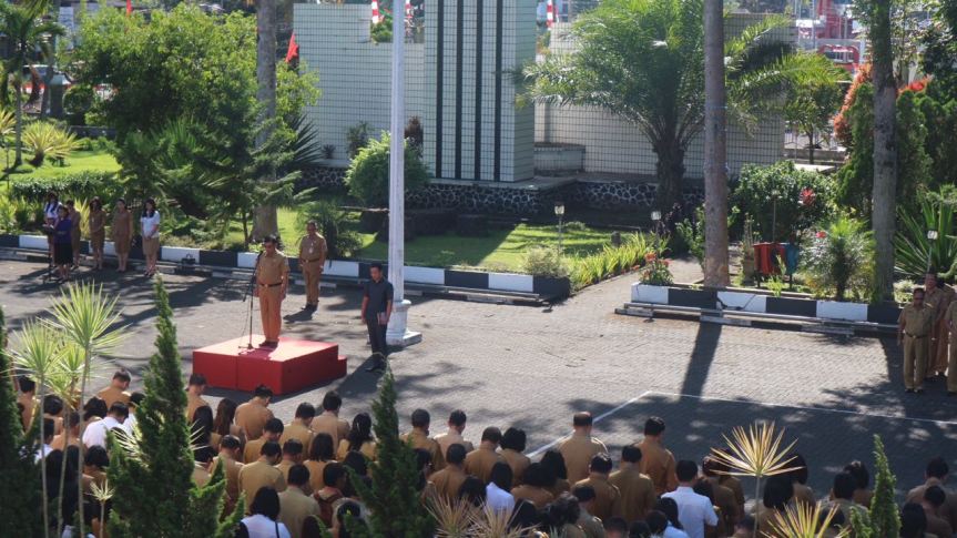 Tondano – Pemerintah Kabupaten Minahasa menggelar Apel kerja awal bulan bagi Aparatur Sipil Negara Senin, 3 September 2018 di halaman Kantor Bupati Minahasa Tondano.