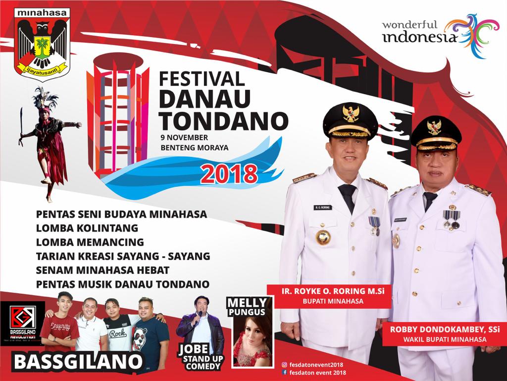 Tondano – Merayakan Hari Jadi Minahasa ke-590, Pemerintah Kabupaten Minahasa melalui Dinas Kebudayaan dan Pariwisata kembali akan menggelar lagi Festival Danau Tondano (FESDATON) pada Jumat, 9 November 2018 pagi hingga sore bertempat di Benteng Moraya Tondano.
