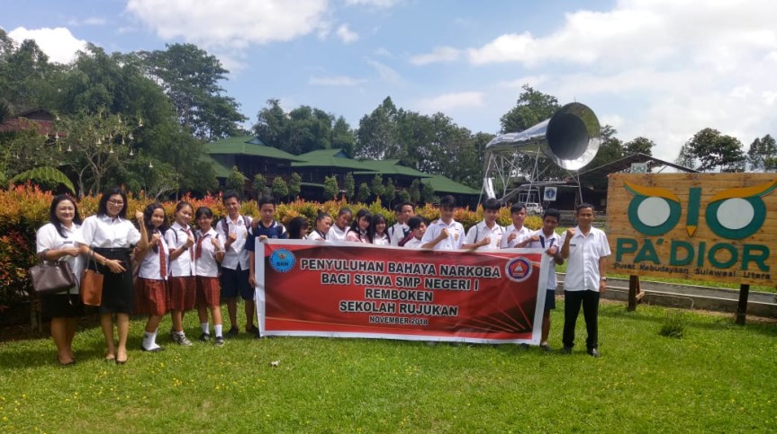 Minahasa – Guna menyelamatkan generasi muda dari bahaya narkotika dikalangan siswa. Sekolah Menengah Pertama Negeri (SMPN) 1 Remboken melakukan kunjungan dan penyuluhan bahaya narkoba bagi siswa yang digelar di Wale Anti Narkoba Pinabetengan Tompaso, Rabu 21/11/18.