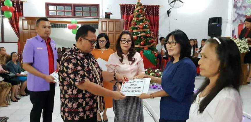 Minahasa – Wakil Bupati Minahasa Robby Dondokambey, SSi (RD) bersama pembina dan remaja GMIM Rayon I Minahasa melaksanakan Ibadah Perayaan Natal Yesus Kristus di jemaat GMIM Zaitun Talikuran Remboken, Minggu (9/12/2018).