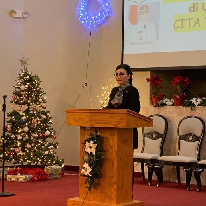 Minsel – Bupati Minahasa Selatan, DR.Christiany Eugenia Paruntu SE, menghadiri Ibadah Natal dan Ucapan Syukur Tahun Baru 2019, yang dilaksanakan oleh Rukun Keluarga/kawanua Minsel, di gereja Upland, Adventist Church, Bloomington, California, Amerika Serikat, Minggu, (20 Januari 2019).