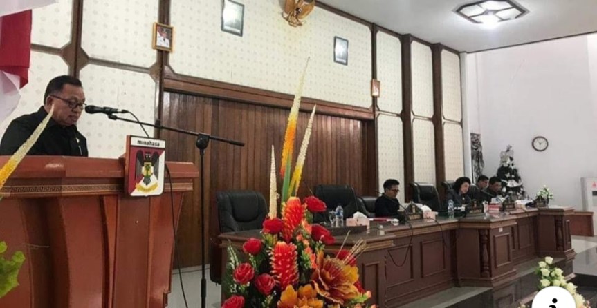 Tondano – Rapat Paripurna DPRD Kabupaten Minahasa dalam rangka penyampaian Rancangan Peraturan Daerah Kabupaten Minahasa Tentang RPJMD kabupaten Minahasa Tahun 2019-2023 Senin, 4 Februari 2019 di Gedung DPRD Kabupaten Minahasa.