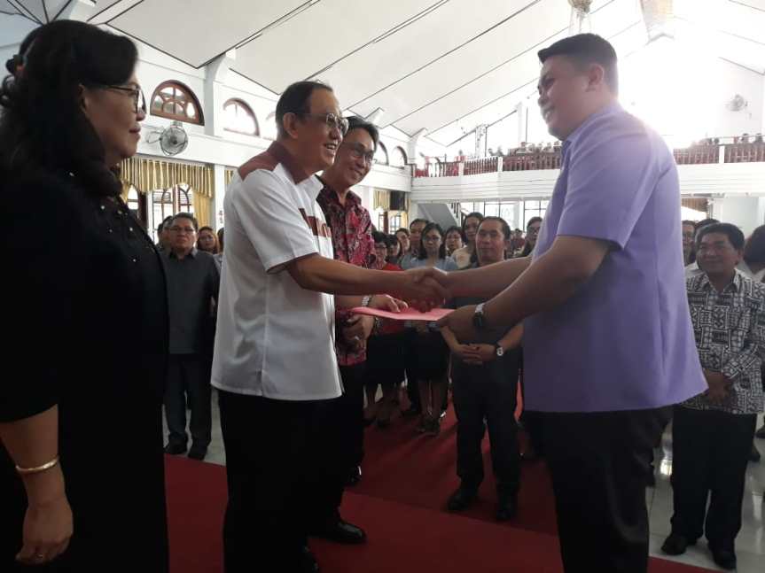 Minahasa – Bupati Minahasa Ir Royke Octavian Roring M.SI ( ROR ) dilantik sebagai ketua panitia pelaksana pesta seni Remaja Se- Sinode GMIM, di Gereja GMIM Sion Sentrum Kawangkoan, Minggu (24/2/2019).