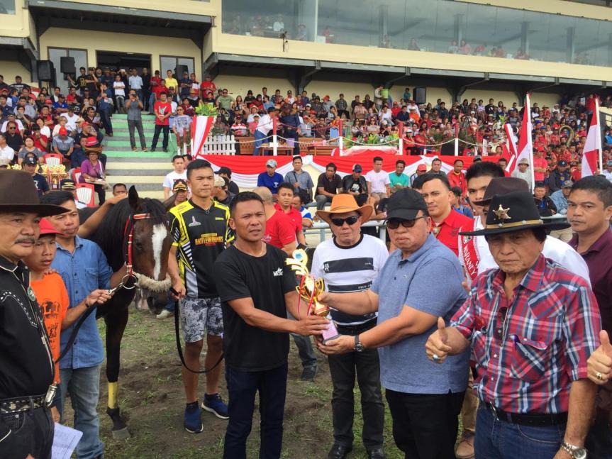 Minahasa – Kejuaraan lomba pacuan kuda, roda sapi dan bendi kalaper yang memperebutkan trophy Bupati dan Wakil Bupati Minahasa, pada Jumat (22/02/19) di Gelanggang Pacuan Kuda Maesa Tompaso berlangsung meriah.