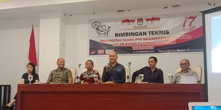 Tomohon – Komisi Pemilihan Umum Kabupaten Minahasa terus memantapkan persiapan Pemilu 2019 salah satunya dengan menggelar Bimbingan Teknis Pemungutan dan Penghitungan Suara kepada Panitia Pemungutan Kecamatan (PPK) di Grand Central Resort Tomohon pada 27-28 Februari.