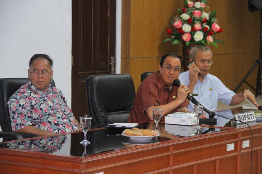 Tondano – Bupati Minahasa Ir. Royke O. Roring, M.Si (ROR) memimpin rapat kerja dalam rangka percepatan dan sinergitas pembangunan di Kabupaten Minahasa Jumat, 1 Maret 2019, di Ruang sidang Kantor Bupati Minahasa.