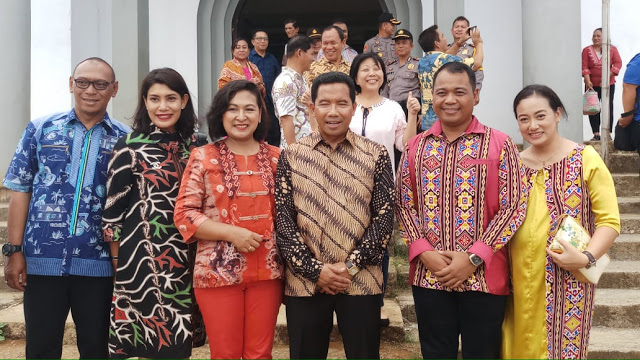 Minsel – Kapolda Sulawesi Utara Irjen Pol. Dr. Sigid Tri Hardjanto, SH, M.Si, bersama Ketua Bhayangkari Sulawesi Utara Ny. Nunuk Tri Hardjanto, menghadiri ibadah misa perayaan ekaristi, Minggu (24/03/2019), di Gereja Katolik Paroki Hati Kudus Yesus, Desa Kroit, Kecamatan Motoling Barat, Kabupaten Minahasa Selatan.