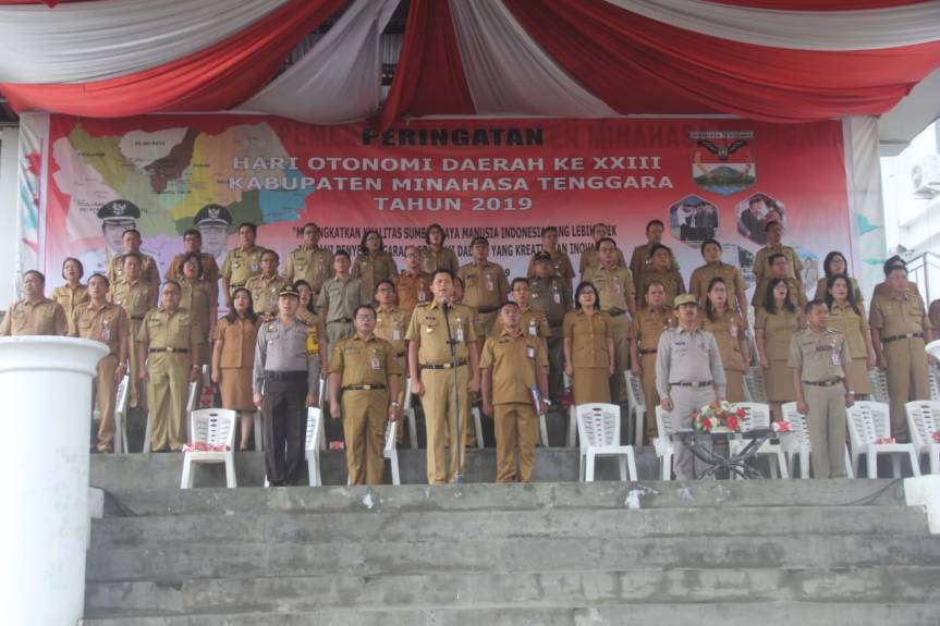 Ratahan – Pemerintah kabupaten Minahasa Tenggara melaksanakan upacara peringatan Hari Otonomi Daerah ke XXIII Tahun 2019 bertempat di halaman kantor Bupati