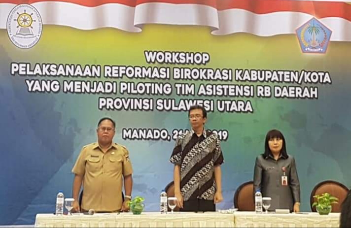 Manado – Sekretaris Daerah Kabupaten Minahasa Jeffry Korwngkeng, SH, MSi bersama sejumlah jajaran pejabat pemkab Minahasa menghadiri Workshop Pelaksanaan Reformasi Birokrasi Kabupaten/Kota Yang Menjadi Piloting Tim Asistensi RB (Reformasi Birokrasi) Daerah Provinsi Sulawesi Utara ; Selasa (21/05/2019) Aston Manado Hotel.