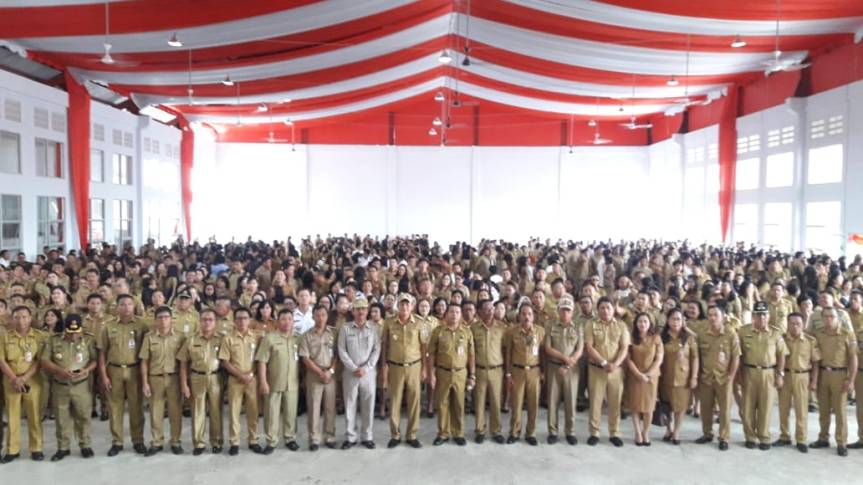 Sambutan Bupati James Sumenda yang disampaikan Wabub Legi menyampaikan bahwa apel perdana yang dilaksanakan pada hari ini merupakan awal di mulainya masa kerja kita sebagai ASN setelah pelaksanaan cuti bersama hari raya idul fitri 1440 Hijriah.