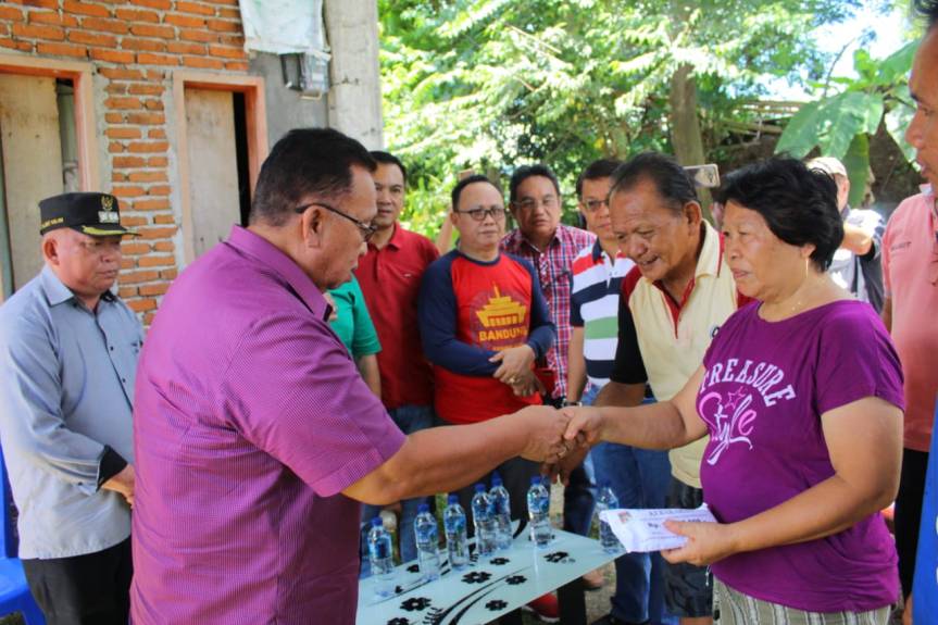 Minahasa – Wakil Bupati Minahasa, Robby Dondokambey S.Si (RD) meninjau dan menyerahkan bantuan kepada korban bencana kebakaran (keluarga Kiroyan-Lumansik), Sabtu (22/6/2019) di Desa Pineleng satu Kecamatan Pineleng.
