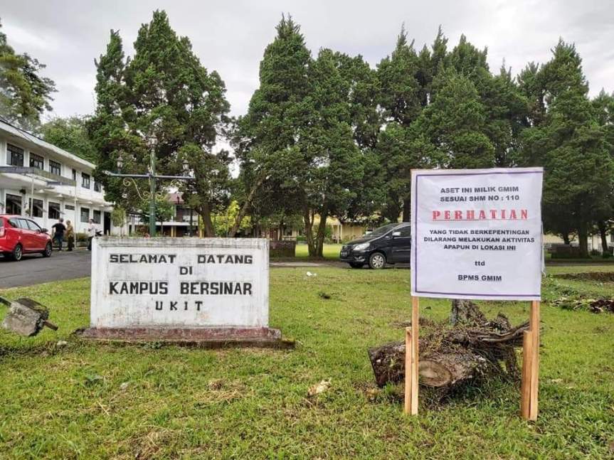 Sebelumnya Rabu (9/7) siang, rombongan BPMS GMIM yang dipimpin langsung Ketua Sinode Pdt. Hein Arina, mendatangi kampus UKIT YPTK dan memasang papan bertuliskan “Yang tidak berkepentingan dilarang melakukan aktivitas apapun di lokasi ini”.