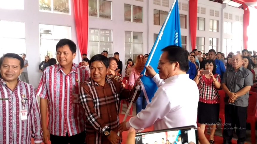 Puncak acara itu, Rektor UKIT menyerahkan Pataka bendera lambang UKIT kepada Bupati James Sumendap sebagai tanda simbolik dimulainya KKN UKIT tahun 2019 di Tanah Patokan Esa, Minahasa Tenggara.