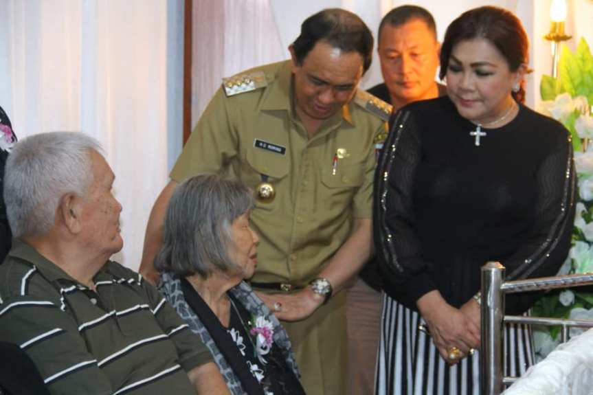 Tondano – Bupati Minahasa Ir. Royke O Roring bersama Ketua TP PKK Dra Fenny Roring Lumanauw serta jajaran, Melayat dan menyerahkan Dana Duka kepada alm. Adri Sumenge di Watulambot Tondano.