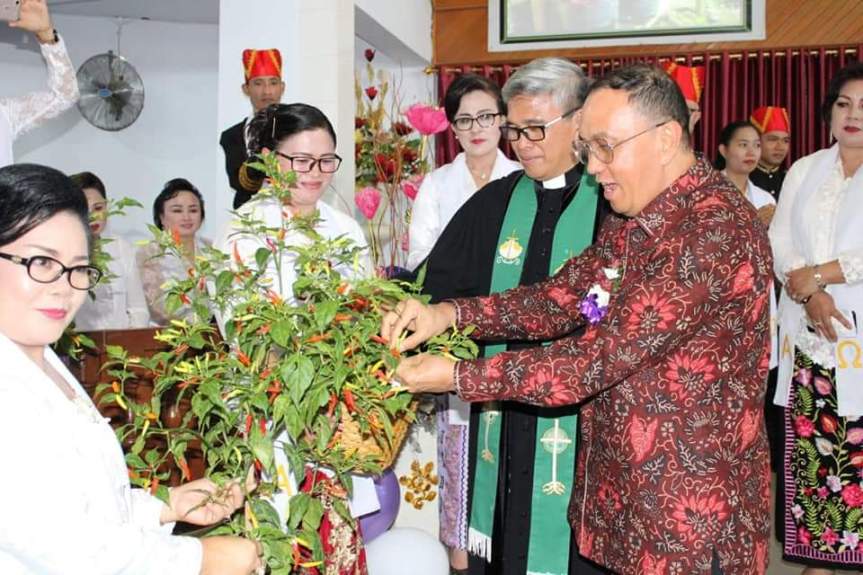 Minahasa – Bupati Minahasa Ir Royke Octavian Roring MSi didampingi Ketua TP PKK Dra. Fenny Roring Lumanauw, SIP hadiri 3 jemaat yang berhari ulang tahun yakni GMIM Efrata Totolan Kakas Barat, GMIM Tiberias Kiniar Tondano Timur, dan GMIM Mahanaim Wewelen Tondano Barat, Minggu 25/8/19.