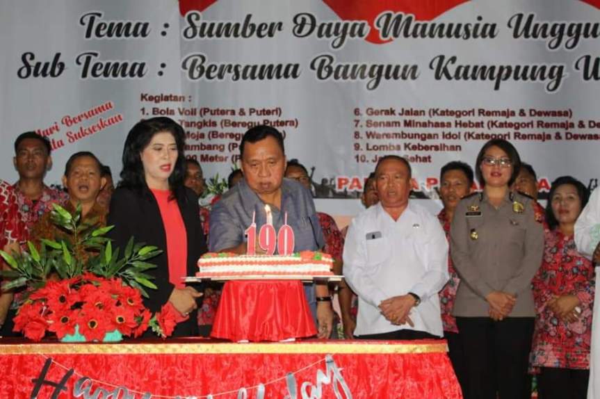 Dalam momentum perayaan hari ulang tahun desa saat ini kiranya akan terus memotivasi kita untuk mengupayakan yang terbaik dalam pemberian diri kepada masyarakat bangsa dan negara,” ungkapnya.