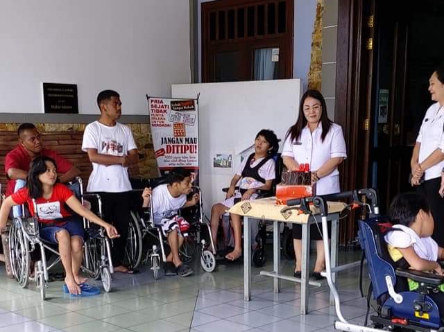 Perayaan itu dilakukan bersama pengurus dan anak-anak disabilitas pada panti asuhan ini.