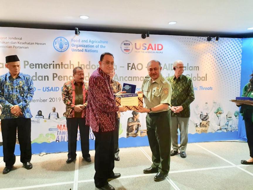 Minahasa – Usai menghadiri acara CAFEO ke-37, Bupati Minahasa Ir Royke Octavian Roring M.Si, selaku ketua PII sulut menyempatkan hadir di acara, kerja sama pemerintah indonesia FAO-USAID dalam mendukung pencegahan dan pengendalian ancaman pandemi global, sekaligus menerima penghargaan sebagai pemerintah daerah yang mendukung Penerapan One Health Program Emerging Pandemic Threats – EPT2, yang diserahkan oleh kepala perwakilan badan pangan dan pertanian perserikatan bangsa bangsa (FAO) indonesia Stephen Rugard, Kamis (12/9/2019). Di jakarta.