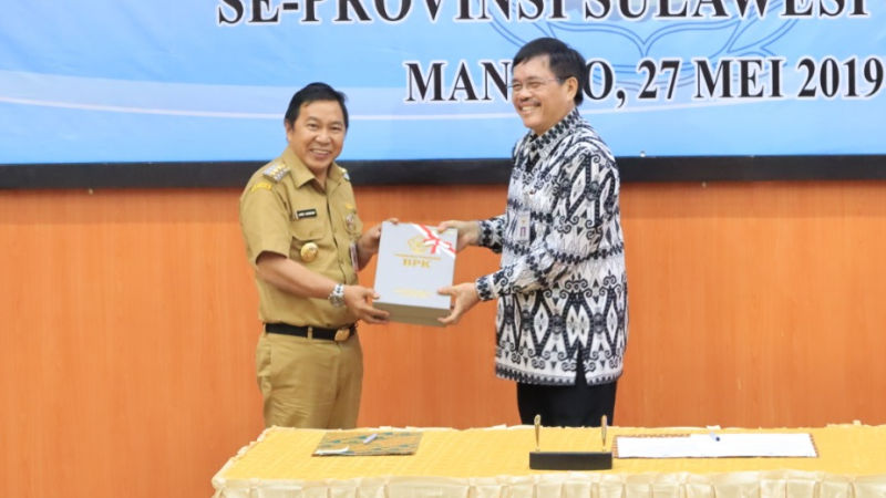Penghargaan diserahkan langsung Kepala KPPN Manado Wayan Juwena SE,MM dan diterima oleh Bupati Mitra James Sumendap melalui Wakil Bupatinya Drs Jocke Legi, di aula Kantor KPPN Manado, Rabu (28/8/2019).