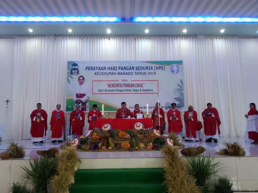 Tondano – Umat Katolik Keuskupan Manado merayakan Hari Pangan Sedunia (HPS) di Kasuang Spritual Center Tataaran, Tondano Selatan, Jumat (18/10/2019).