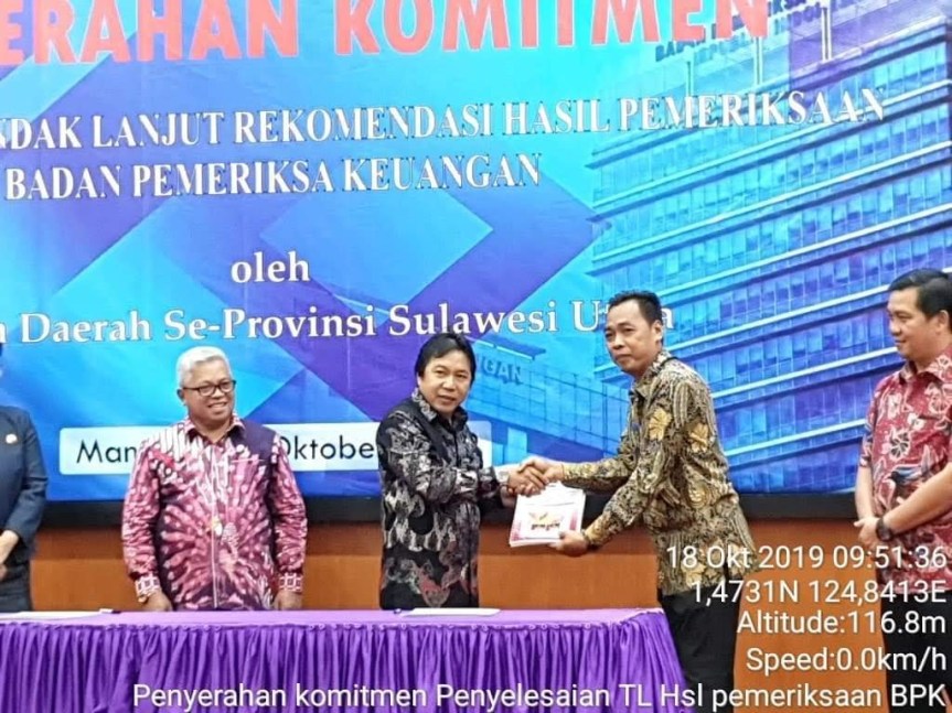 Pada kesempatan itu Bupati JS menandatangani Memorandum of Understanding (MoU) atau nota kesepahaman dengan pihak BPK Perwakilan Sulut terkait penyelesaian rekomendasi BPK.