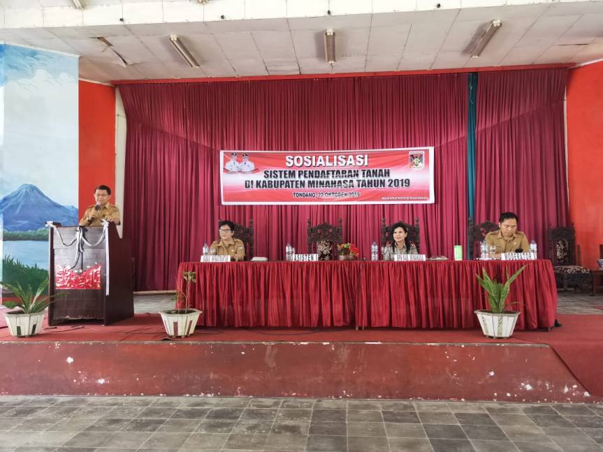 Tondano – Pemerintah Kabupaten Minahasa melalui bagian Infrastruktur Sekretariat daerah menggelar Sosialisasi Sistem Pendaftaran Tanah yang, Selasa 22/10/19 di Aula SMK N I Tondano.
