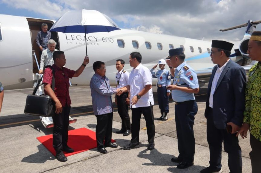 MANADO – Mantan Wakil Presiden Republik Indonesia Jusuf Kalla (JK) berkunjung ke bumi Nyiur Melambai, Kamis(14/11). Ditemani Wakil Gubernur Sulut Steven Kandouw, JK pun menghabiskan waktu seharian di Kota Tinutuan.