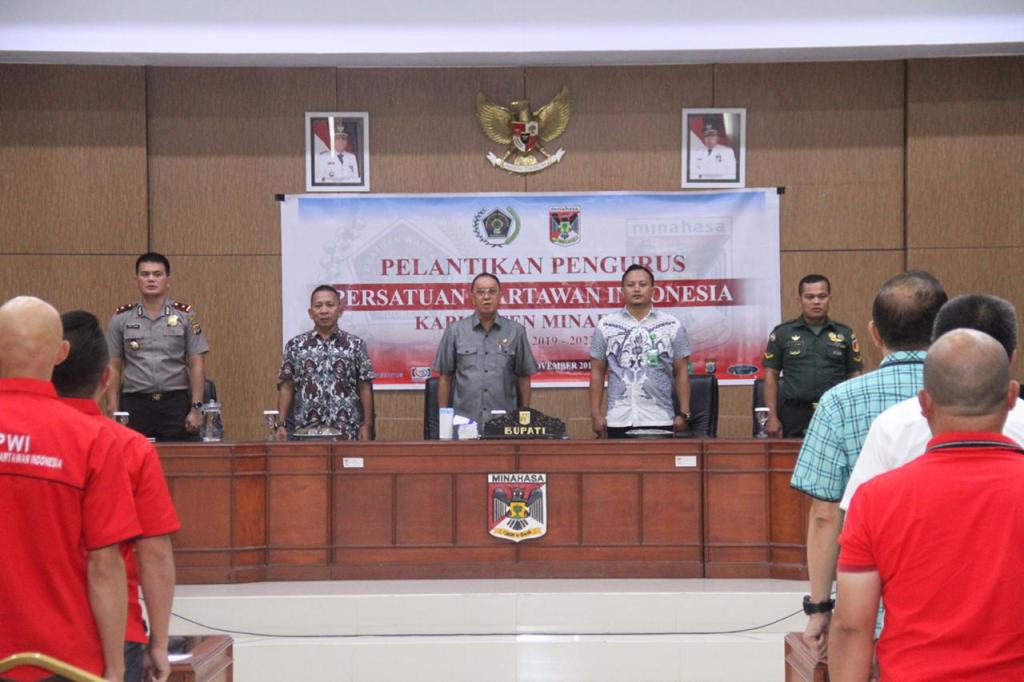 MINAHASA – Pengurus Persatuan Wartawan Indonesia (PWI) Kabupaten Minahasa dilantik Bupati Ir Royke O. Roring M.Si IPU masa bakti 2019-2022, Jumat (22/11) di Ruang Sidang Kantor Bupati Minahasa. Bupati, yang juga merupakan penasehat PWI Kabupaten Minahasa menyatakan rasa bangganya atas kehadiran PWI Kabupaten Minahasa disaat dirinya dan Wakil Bupati Robby Dondokambey (RD), menjadi pemimpin di Kabupaten Minahasa. Seluruh insan pers senantiasa memupuk kesadaran dan komitmen Wartawan Indonesia untuk berperan serta dalam pembangunan bangsa dan negara.