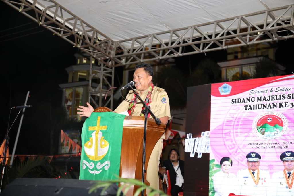 MANADO – Gubernur Sulawesi Utara Olly Dondokambey SE menghadiri giat Sidang Majelis Sinode Tahunan (SMST) ke-32 tahun wilayah VII di GMIM Pniel kota Bitung, Selasa(26/11).