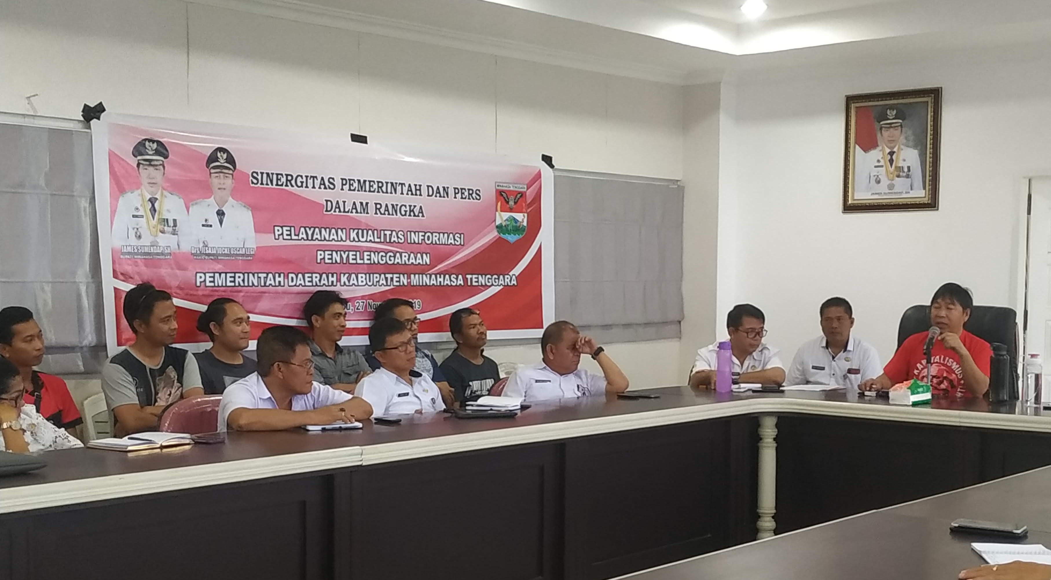 Ratahan – Pemkab Minahasa Tenggara (Mitra) menggelar pertemuan Sinergisitas Pemerintah dan Pers Dalam Rangka Pelayanan Kualitas Informasi Penyelenggaraan Pemda Kabupaten Minahasa Tenggara, di Kantor Bupati Lantai 3 pada sore tadi, Rabu (27/11/2019).