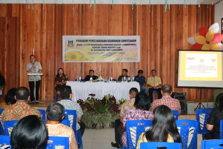 Tomohon – Dalam rangka memelihara keamanan lingkungan, Badan Kesatuan Bangsa dan Politik Kota Tomohon menggelar Rapat Forkopimda (Forum Koordinasi Pimpinan Daerah) dengan tokoh masyarakat se-Kecamatan Tomohon Utara di BPU Kelurahan Kakaskasen dua, kamis (28/11/19).