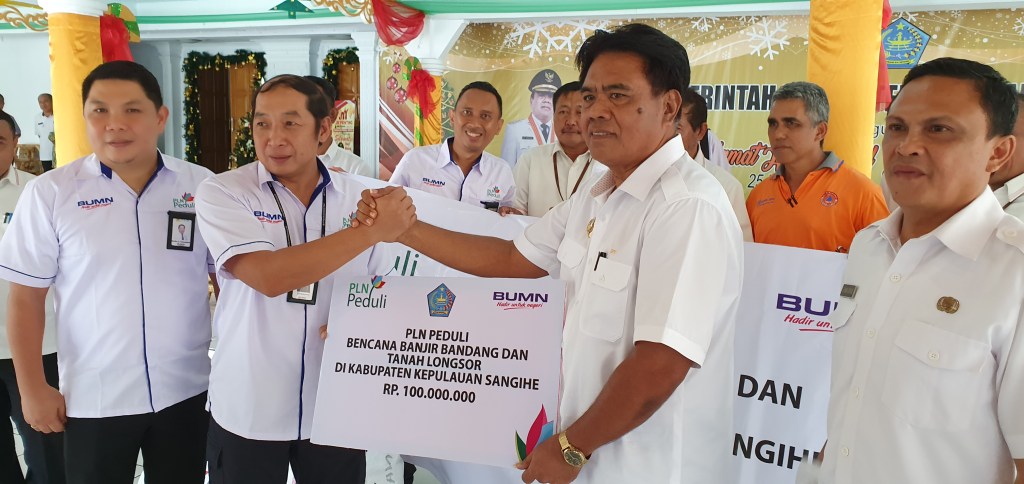 SULUTNEWSTV.com, MANADO – Setelah melakukan upaya pemulihan sistem kelistrikan di Kepulauan Sangihe untuk desa-desa yang terdampak bencana, PLN melalui PLN Peduli juga memberikan bantuan bagi para korban yang diserahkan, Rabu(8/1).